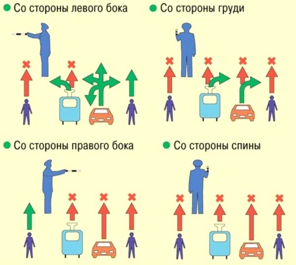 Напомним, трамваи также движутся направо, «из рукава – в рукав» регулировщика.